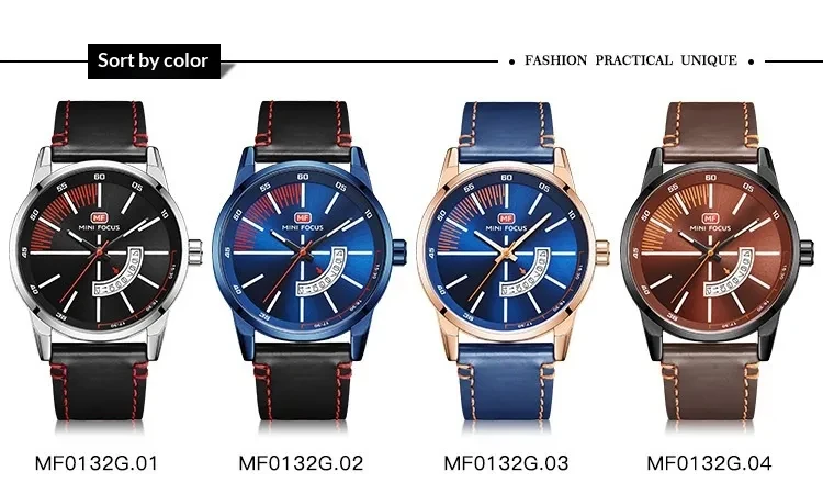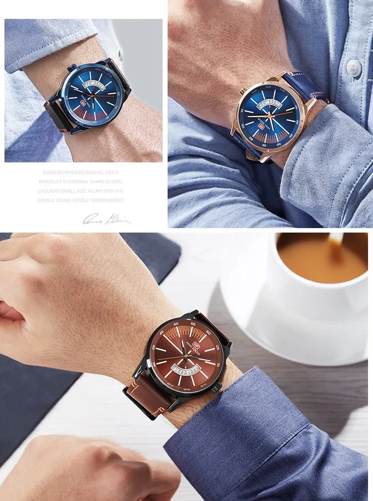 Color: 01 steel case with black dial and black leather strap—strap needs to be replaced; 02 blue case with blue dial and black leather strap—strap needs to be replaced; 03 rose gold case with blue dial and blue leather strap—strap needs to be replaced; 04 black case with coffee-colored dial and brown leather strap—strap needs to be replaced